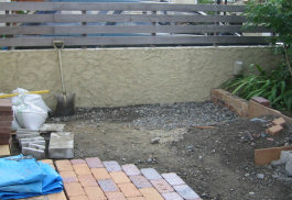 まずは整地です。 一個一個丁寧に並べてゆきます。