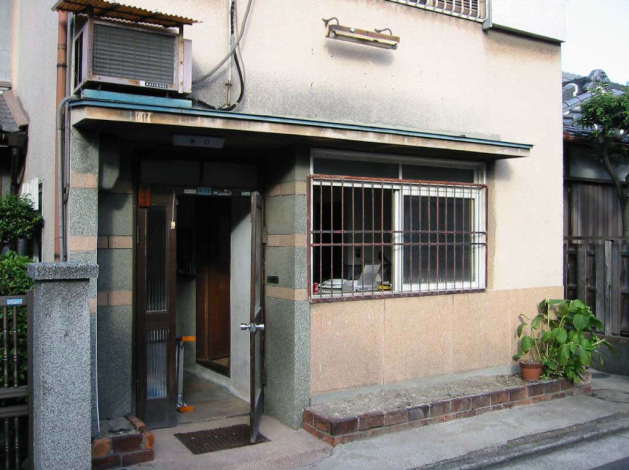 かなりくたびれた玄関周りでした。古いエアコンの室外機や、錆び付いた