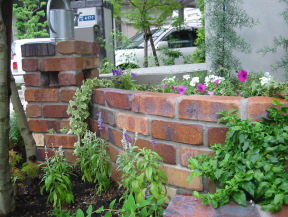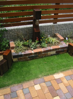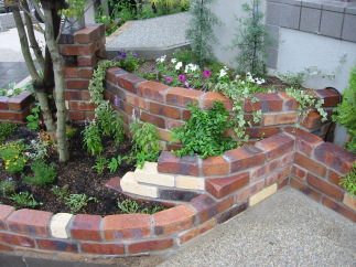 建物とのバランスで高さが必要なら立体的な花壇を作ります。 レンガをデザイン的に組み上げて、土壌も高低差をつけました。 オリジナリティ溢れる花壇は、ご自身のお庭への 愛着を一層高め、ガーデニングライフを より楽しく、充実したものしてくれます。 |