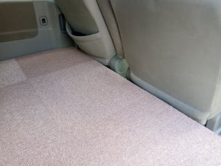 フロア前端のスペースです。フロントシートを一番前にスライドしてシートバックを倒すと大きなバッグを置けるほどのスペースができます。フラットフロアを広く使いたい場合はここに荷物を集約して、なんなら枕にしてもいいですね。